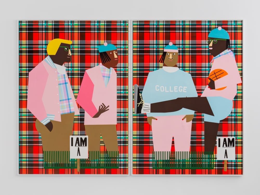 NINA CHANEL ABNEY, ‘I Am – Somebody,’ 2022, Collage on panel, diptych, 84 1/4 x 60 inches (each, paper), © Nina Chanel Abney, Courtesy of NINA CHANEL ABNEY